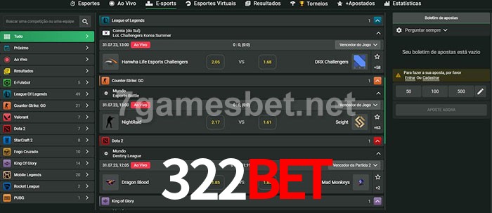 A aposta 322bet oferece aos jogadores a experiência mais conveniente de apostas em eSports!